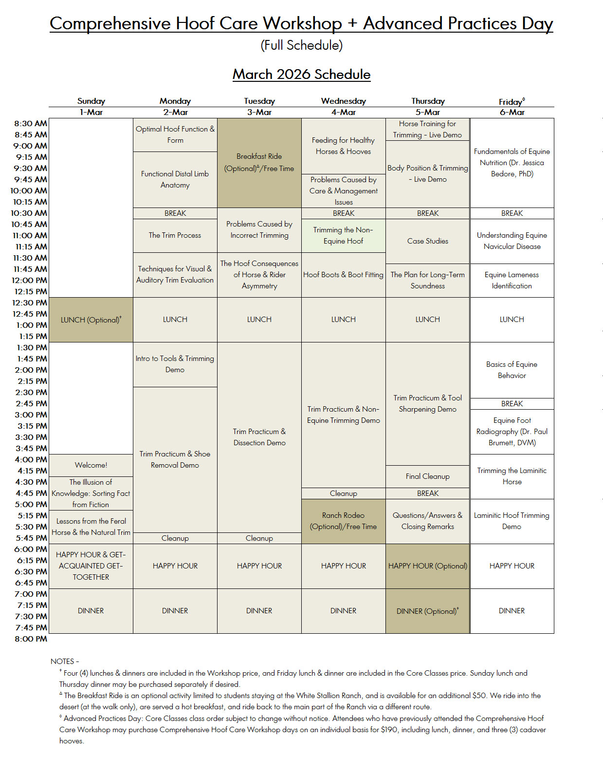 Core Classes Schedule